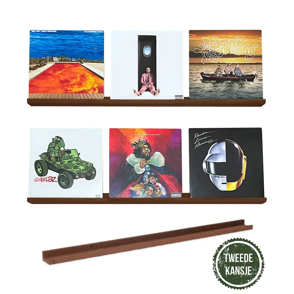 De LP wandplank is ontwikkeld om 9 LPs aan de muur op te hangen. De LP platen staan veilig achter een riggel.